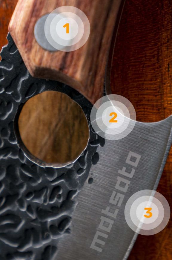 A Matsato szakácskés precíziós, lézerrel vésett mutatóujjnyílással rendelkezik a kiváló irányíthatóság érdekében. A penge kiváló minőségű rozsdamentes acélból készült, amely biztosítja az éles, minőségi kést az elkövetkező évekre. A prémium bükkfa markolat valószínűleg a legkényelmesebb és legbiztonságosabb markolat, amit valaha is készítettek.